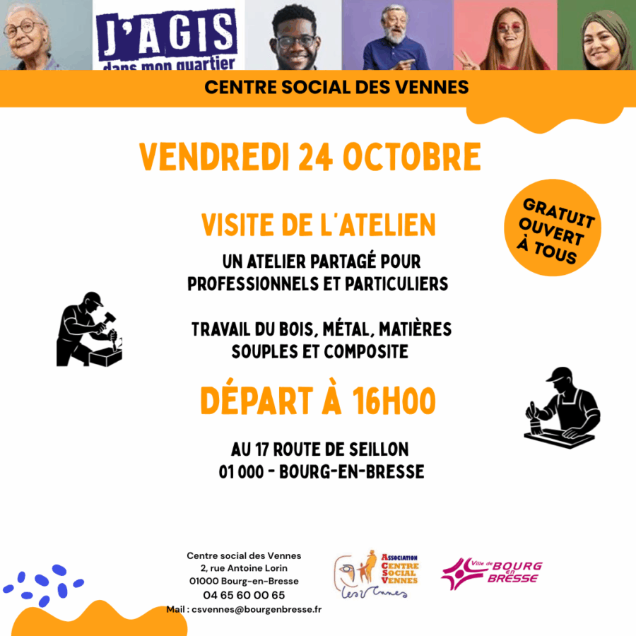 Une visite de l’atelien (atelier partagé pour professionnel avec le travail du bois, du métal….) est organisé, ce vendredi 24 octobre avec un rendez-vous à 16h à L’Atelien