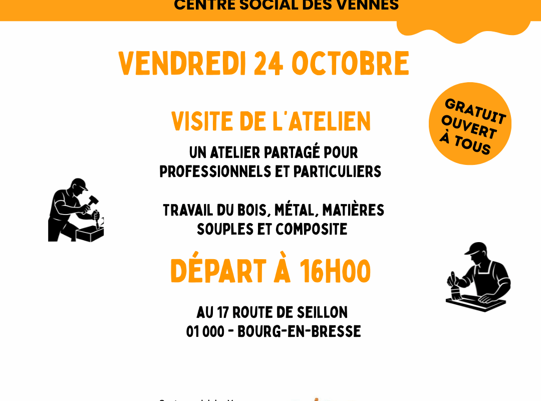 Une visite de l’atelien (atelier partagé pour professionnel avec le travail du bois, du métal….) est organisé, ce vendredi 24 octobre avec un rendez-vous à 16h à L’Atelien